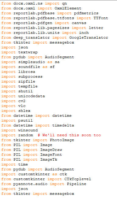 The process of getting Whisper and getting it to run involved many Python downloads – have a peek at a section of the final imports list:
