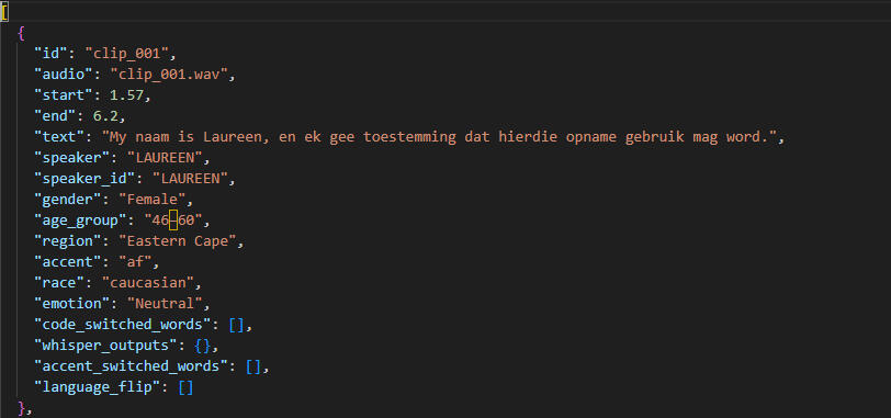 The other speakers are a variety: A woman in the male-dominated field of car parts; Two teachers, one male, one female; A native English neurodivergent trying to learn Afrikaans through painful conversations with Google Gemini (spoiler – he gave up because he became convinced that Gemini was harming his learning); A male car parts salesman; A female OT student. What they gave me is priceless – spontaneously spoken Afrikaans by the realest of people in its full, code-switching glory. These amazing people donated so much of their speech that I had to pause them. I simply don't have the time to process all of it fast enough.