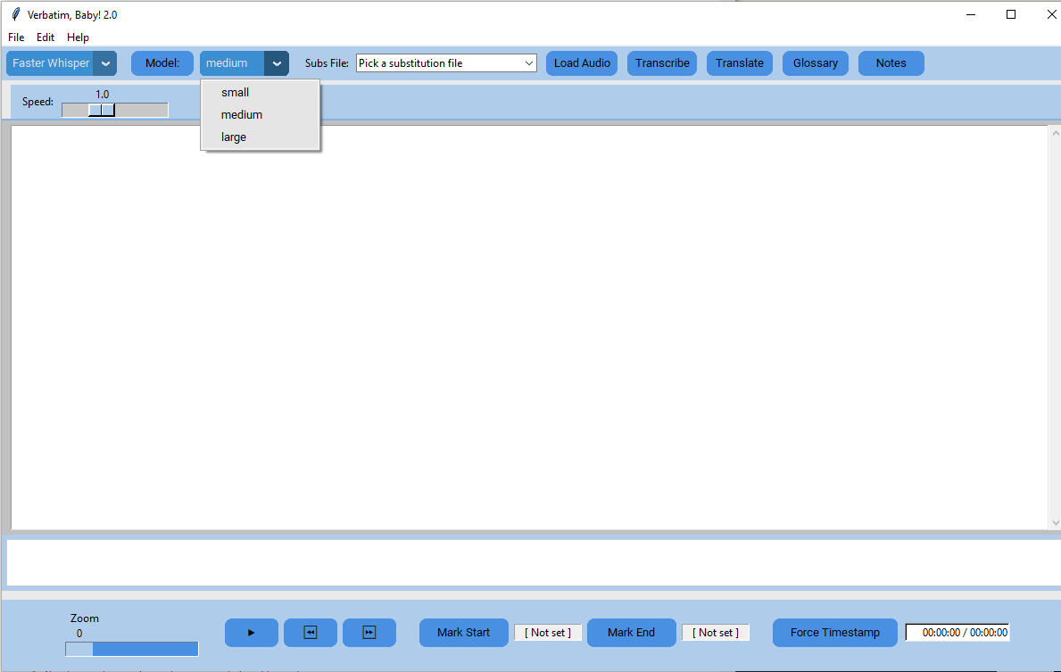 I was very excited once we had that expandable window that could load, play, and skip audio clips forward and back, and I was ready for the next step. During the planning of the roadmap, we discussed open-source ASR engines that I could run offline and decided on Whisper. I was arrogant, and I insisted that the Whisper model we started with be downloaded and accessed from my hard drive. I still feel the same way, especially concerning client-confidential audio.